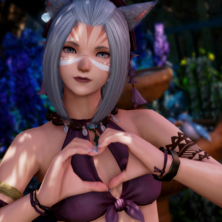 English:I've been playing FFXIV for many years.It's my main game and always will be because I simply love it with all its facets and possibilities. :3I've been playing since 1.0 and I love my legacy tattoo.There are definitely times when there's a lull in content or I get bored, but I always find something to do that I enjoy. Besides content, I really enjoy taking pictures in the game, I love housing, I'm more of a crafter than a fighter, and I only do what I feel like doing.My motto for FFXIV is "Do everything at your own pace and whatever you want; nothing is mandatory."Back then, I enjoyed playing other MMOs, like Perfect World, Jade Dynasty, and Ether Saga.Even earlier, I also loved playing on consoles, but that became less and less frequent over the years, and eventually, I only played FFXIV on PC. ^^These days, I enjoy playing other games as well. Either alone, with my partner, or with my son.