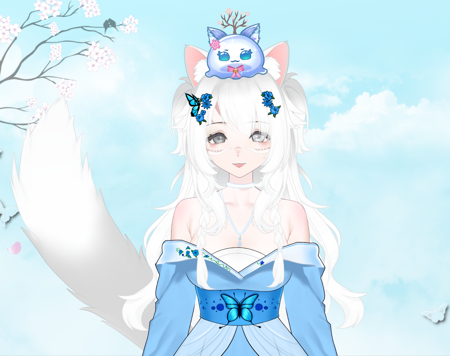 Englisch:In a time when gods watched over all things in their heavenly realms, a fox fairy was born from a dewdrop in the moonlight.Raised by a fox, they both explored the secrets of nature together, constantly learning something new.She is a free spirit through and through and doesn't shy away from the adventures that her curiosity always leads her into. When she's feeling lazy, however, she likes to spend time in a peach orchard, where the scent of fresh peaches and the blossoms of the many trees are carried by the wind across the green meadows. Her world is rarely surrounded by bright colors. She perceives her surroundings like the color of her eyes and her hair.Butterflies are her favorite; when they flutter and join her, the grayness fades away, and even the smallest blade of grass shines in its original color.But what would a little fox fairy be without her own special secret? When night falls and the moon bestows its light upon the earth, she transforms into a moon fox fairy.Different, but still the same playful little fox fairy.